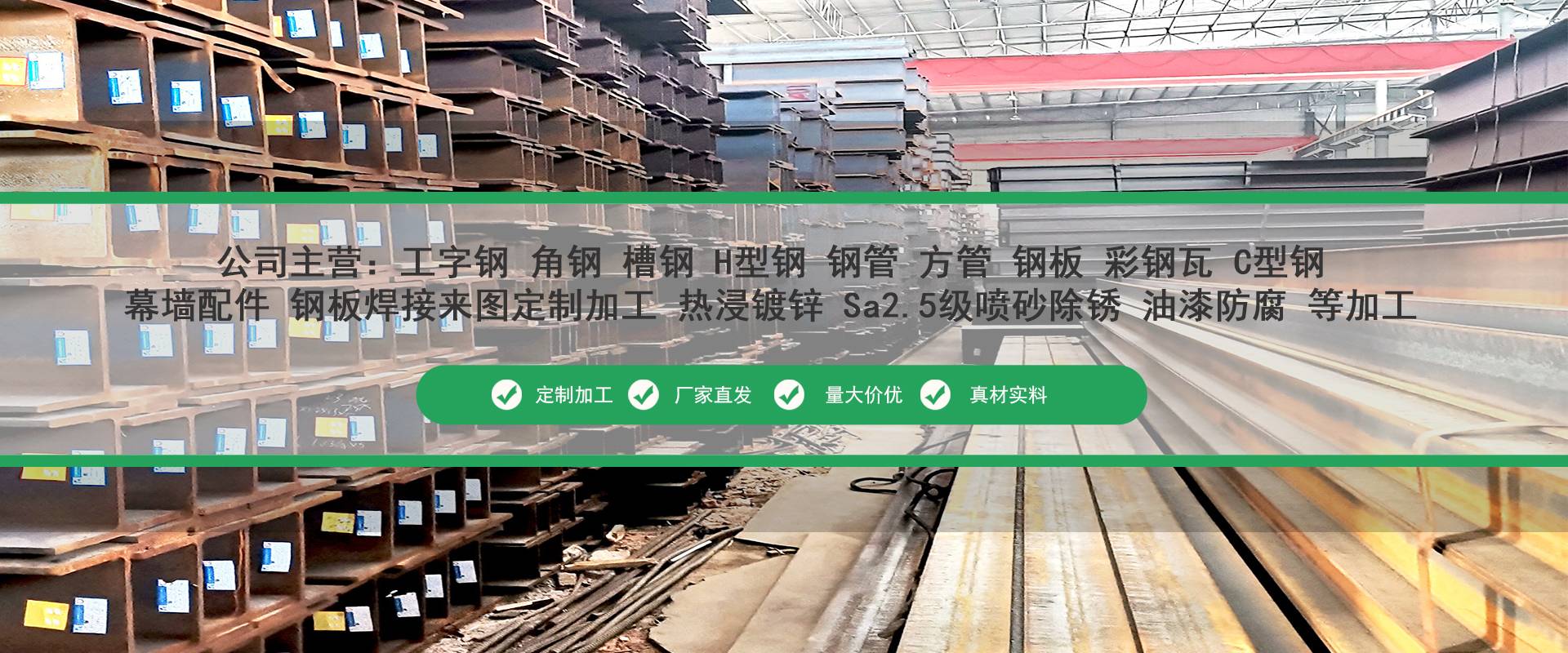 廣東佛山京錦鋼鐵是華南地區(qū)大型鋼鐵貿易商,廣東華南鋼材現(xiàn)貨批發(fā)交易,主營工字鋼、槽鋼、角鋼、H型鋼、鋼管、鋼板等,型號規(guī)格齊全,批發(fā)價格更優(yōu),公司配有鋼管防腐加工廠,熱浸鍍鋅生產線二條,鋼材Sa2.5級噴砂,拋丸除銹,高頻焊接、折彎、沖孔、鋼板切割、等配套加工廠歡迎來電咨詢。